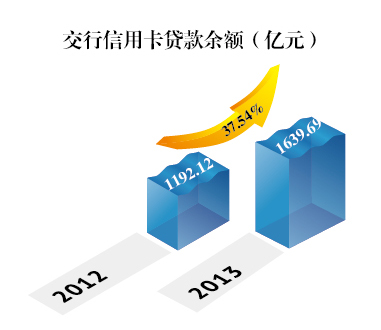 在信贷额度上,截至2013年末,交行信用卡贷款余额如下图所示: