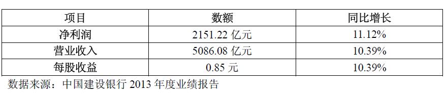 3月30日,中国建设银行发布2013年度业绩报告。根据建行披露的年报报告显示,该行的具体利润及收入数据如下表所示。