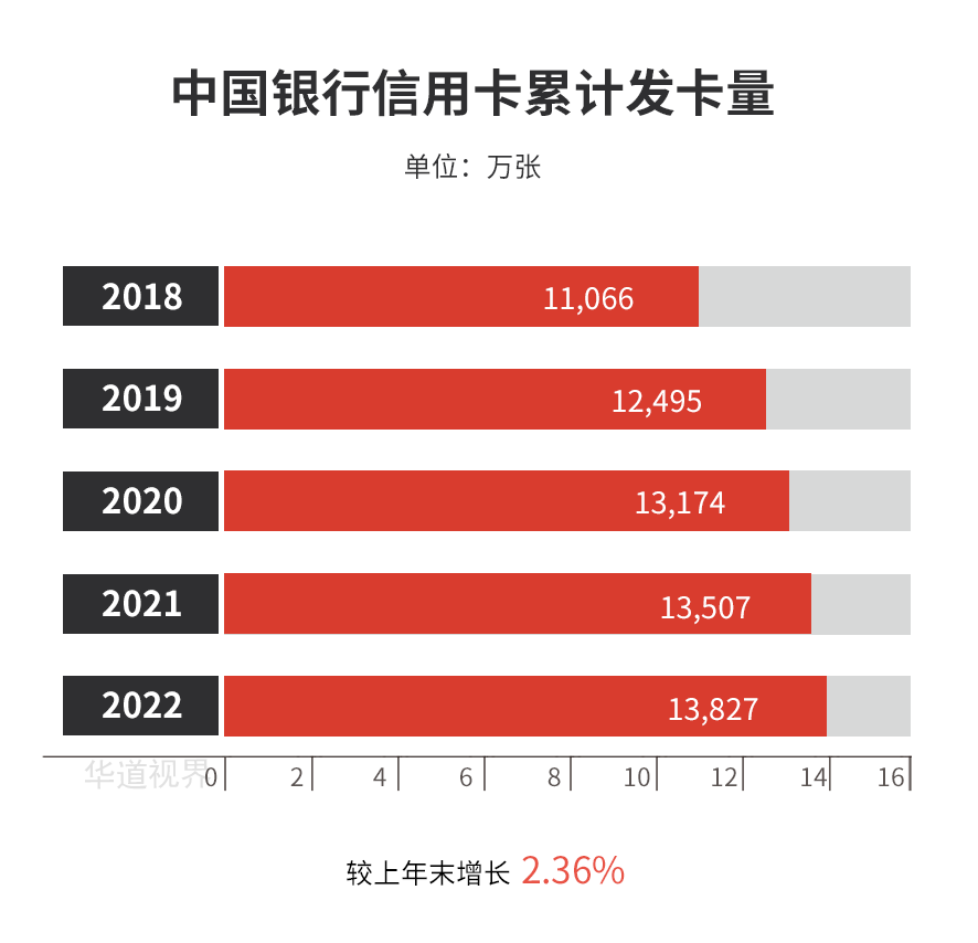 截至报告期末,中国银行信用卡累计发卡量 13,826.61 万张,较上年末增长2.36%;