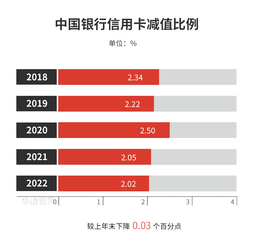 截至报告期末,中国银行信用卡减值金额103.02亿元,减值占比为2.02%,较上年末下降0.03个百分点;