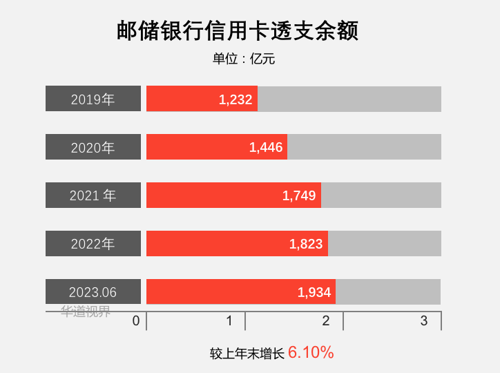 截至2023年6月末,邮储信用卡透支及其他1,933.88亿元,较上年末增加111.22亿元,增长6.10%;