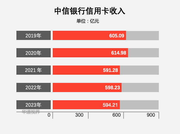 2023年,中信银行实现信用卡业务收入 594.21 亿元;
