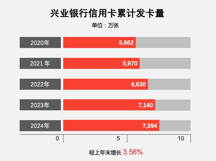 报告期内,兴业银行信用卡新增发卡 254.50 万张,截至2024年末,累计发卡7,394.05万张;