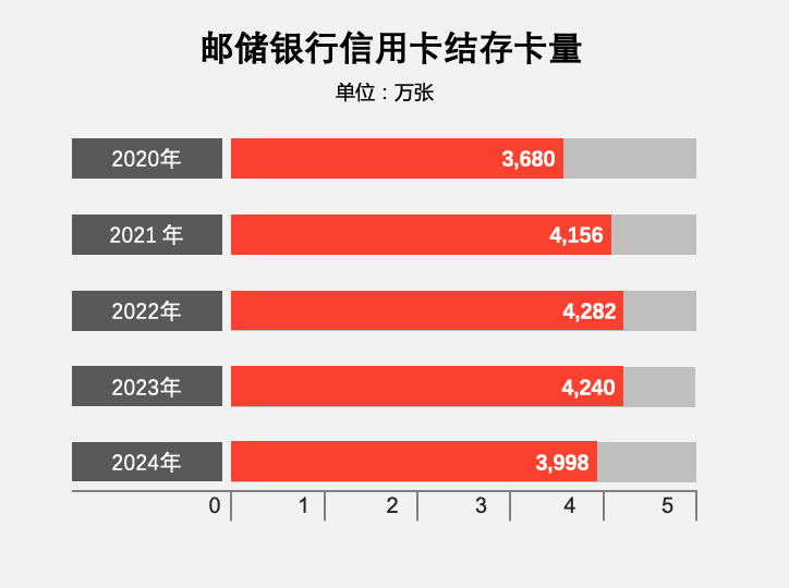 2024年,邮储银行信用卡新增发卡780.78万张,结存卡量达3,998.25万张;