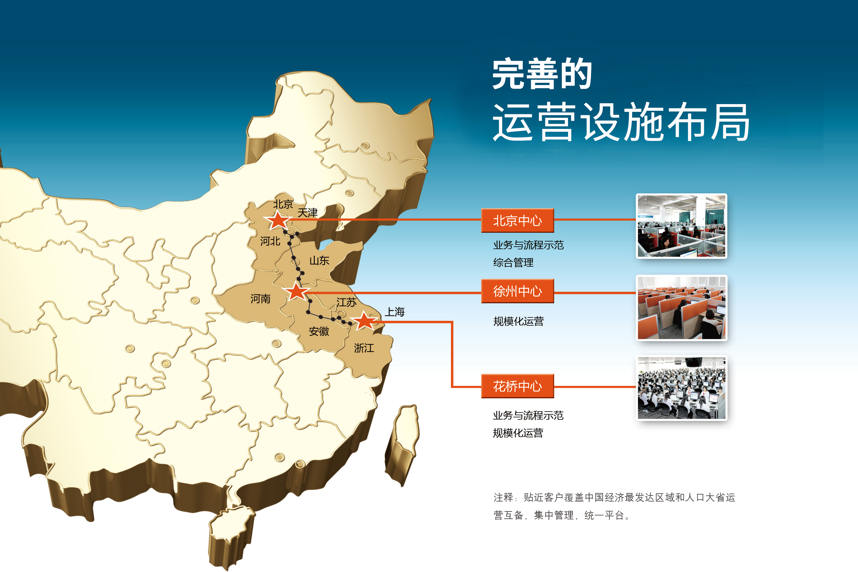 作为自古以来的战略要地,江苏省徐州市地处四省交界,人力资源充沛。在京沪高铁线上,徐州介于北京和上海中间,方便客户现场督导、检查的同时,也利于ok138cn太阳集团实现三地职场的统一管理,实现公司整体在业务运营、人力招聘等多个环节互备,相互依托,满足未来业务快速增长的需要。