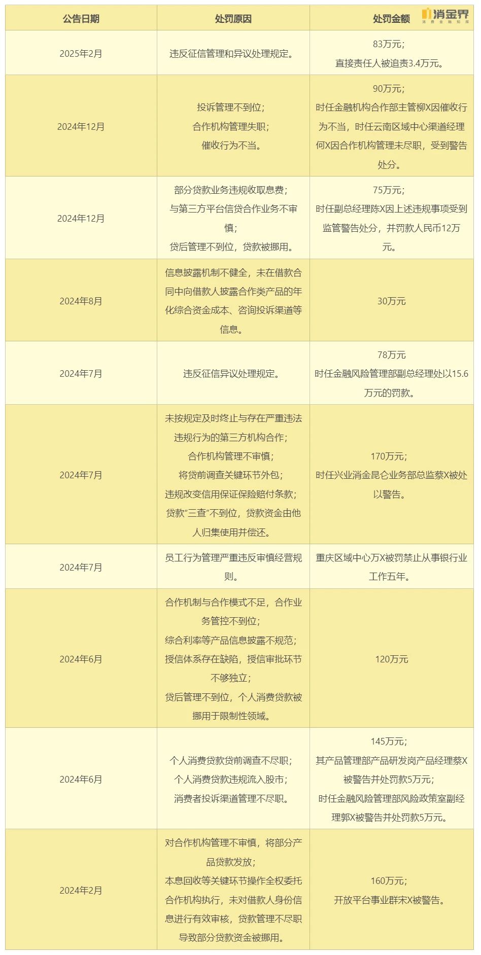 2025年“3・15”消费者权益保护日将至,金融消费领域乱象再次成为监管与舆论焦点。对此,我们对2024年以来持牌消金公司收到的罚单情况进行了总结与梳理,以此来看消费金融公司普遍存在的合规短板。