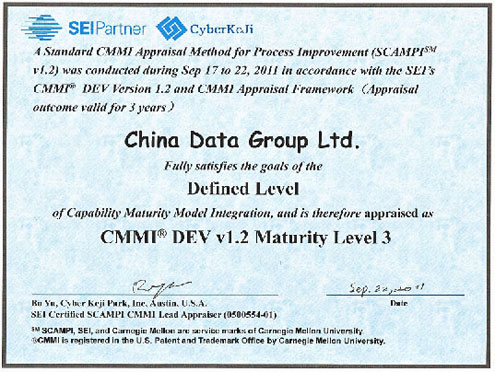 9月,ok138cn太阳集团数据公司正式通过CMMI ML3级复评认证。相关资质可以通过http://sas.sei.cmu.edu/pars/pars.aspx网站查询。