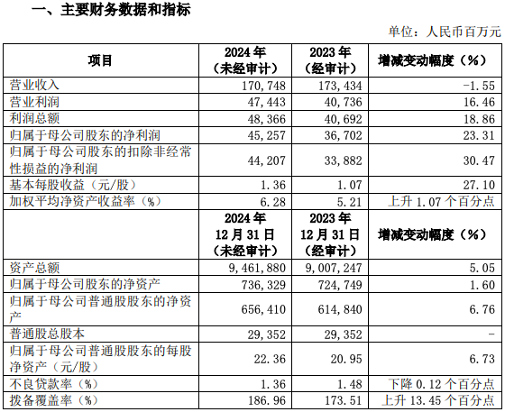 1月17日晚间,浦发银行发布了其2024年业绩快报。