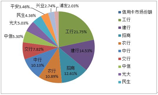 图1 上市银行信用卡截止2015年6月末市场占比(累计发卡量)