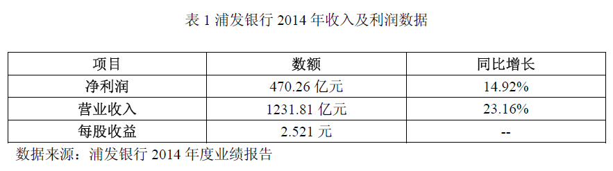 3月18日,浦发银行正式发布了2014年年报,根据浦发银行披露的2014年年报显示,该行的具体利润及收入数据如下表所示。